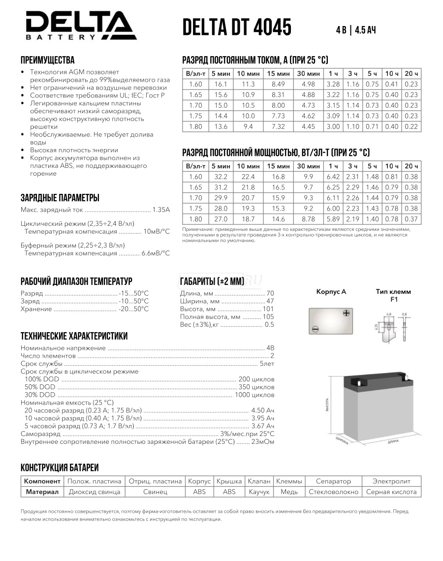 Номинальное напряжение | 4 В |